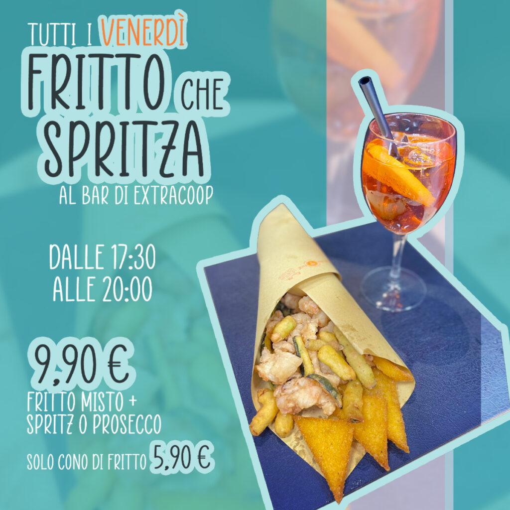 Ti aspettiamo tutti i venerdì dalle 17.30 alle 20.00 per un fritto misto accompagnato da spritz o prosecco, a soli 9,90€.